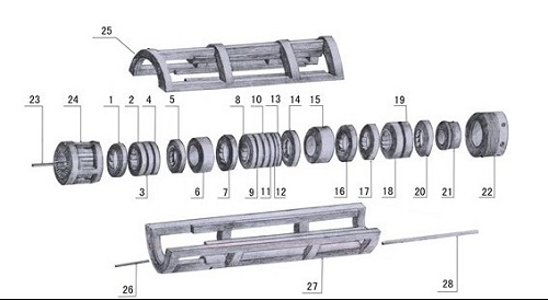 6YL-150型螺旋榨油榨籠(包括條排,圓排,骨圈)的拆裝方法: